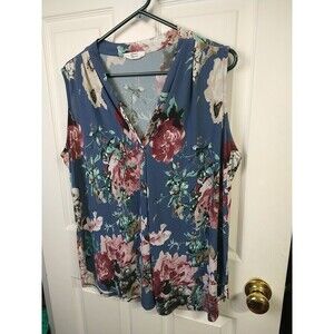 Beacon appeal woman 1X pullover neck pleated shoulder curved hem floral tank in excellent condition no flaws.