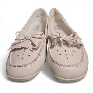 Beacon White Leather Slip On loafer Sz7 Fisherman Aesthetic Preppy Coastal Cool