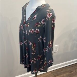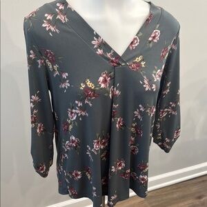 Beacon XS Floral Gray Relaxed Blouse with 3/4 Sleeves