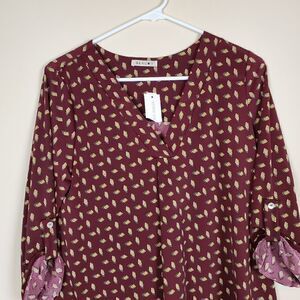 Beacon Stitch Fix Burgandy Patty Roll Tab Blouse Size Small
