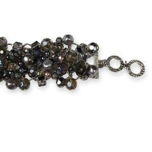 Bead Charm Chain Bracelet Wide Silver Tone Gray Taupe Vintage Premier Designs