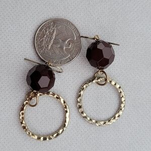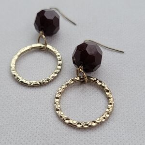 Dangling earrings Faceted bead Gold tone hammered hoop Pre-owned