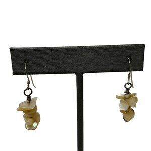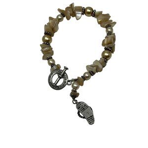 Bead Retreat Bracelet Pierced Wire Earrings Tan Shell and Silver Tone
