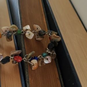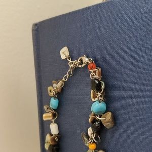 Necklace with stone, shell, and plastic beads with an adjustable clasp. Approximately 18 inches long. Used but in great condition.