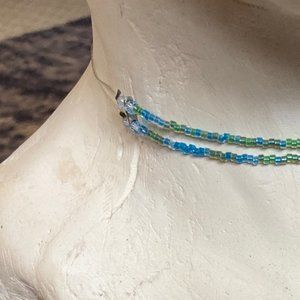 Selling this blue and green beaded choker necklace. The length from end to end is 14.75 inches.