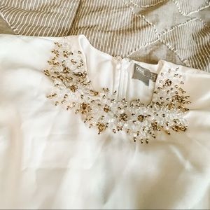 Cream Skater Skirt Dress with gold and crystal beading around the neckline