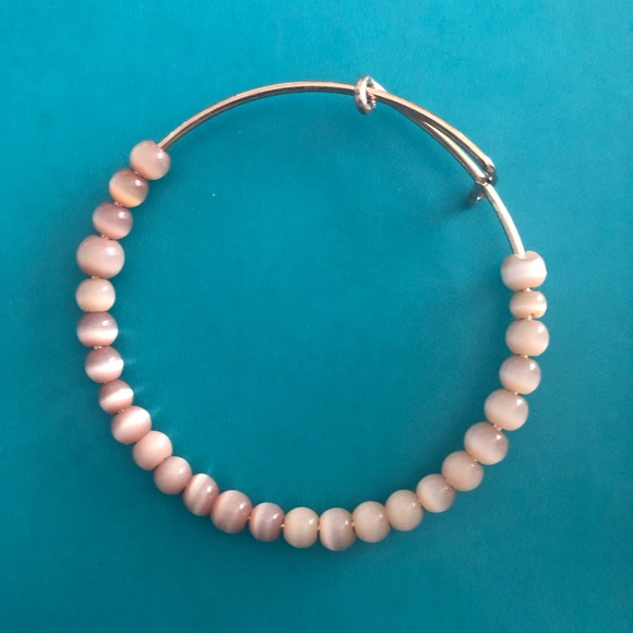 Beaded adjustable bangle with delicate pink beads. One of a kind Custom made