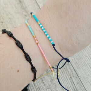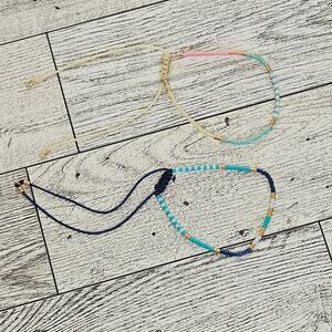 Beaded Adjustable Bracelet Set of Two Blue Pink Boho Casual Faerie