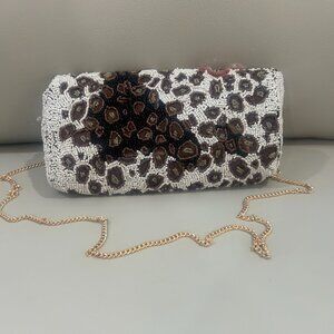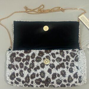 Beaded Animal Print Flower Sequins India Handcrafted Bag Crossbody Clutch NWT