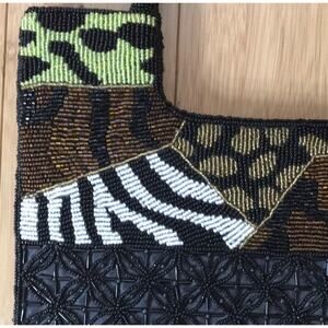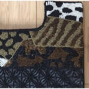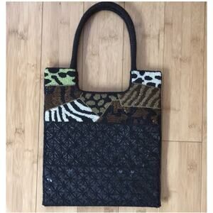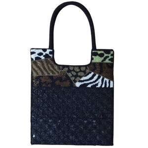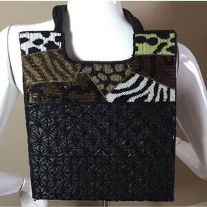 Beaded Animal Print Tote Bag Zebra Leopard Patchwork Jungle Boho Purse. Great Preowned Condition - see last photo for minor flaw not very visible.