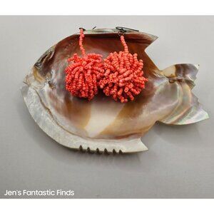 Exquisite Beaded Atomic Starburst Pom Pom Earrings, 2". Exhibiting a vibrant blend of Coral and Salman hues, these earrings feature an eye-catching 3-D beaded starburst pattern.