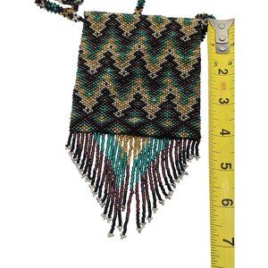 Beaded Bag Medicine Pouch Boho Hand Made Beautiful Pattern Purple Green Gold