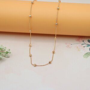Delicate rose gold necklace with evenly spaced polished ball accents.