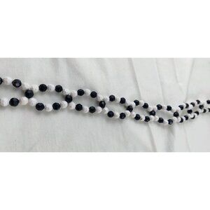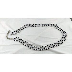 Beaded belt, black and white plastic beads with a silver chain end allowing for adjustable sizing. Could also be used as a necklace. Great for the spring season. Good condition.