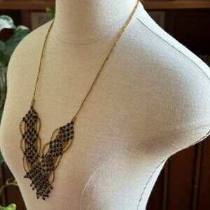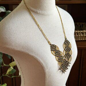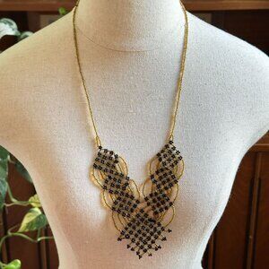Beaded Bib Necklace, Black Gold Statement