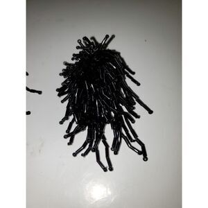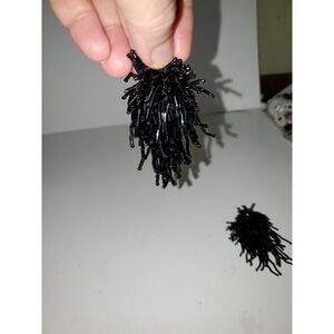 These beaded earrings look like someone's rocker wig. Maybe Cher's? They are fun and weird and would look like something living on your ear lobes. There are shorter beads at the top and bottom, but the middle beads are tube beads and they are very shiny. Somebody is going to love these and wear them everywhere. A Kiss concert would be a great place for them. They are 3" long and 1.5" wide and I have never seen another pair like this. These are in very nice pre-owned condition.