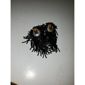 Beaded Black Dangle Cluster Earrings Clip On Boho Rocker Metal Funky Weird