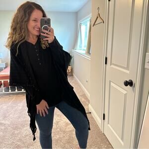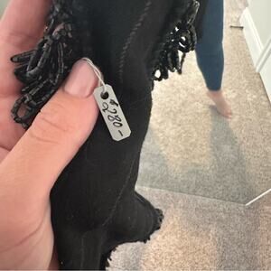 I adore this super pretty brand new with the original price tag wool blend black and gray striped beaded tassel fringe scarf/wrap