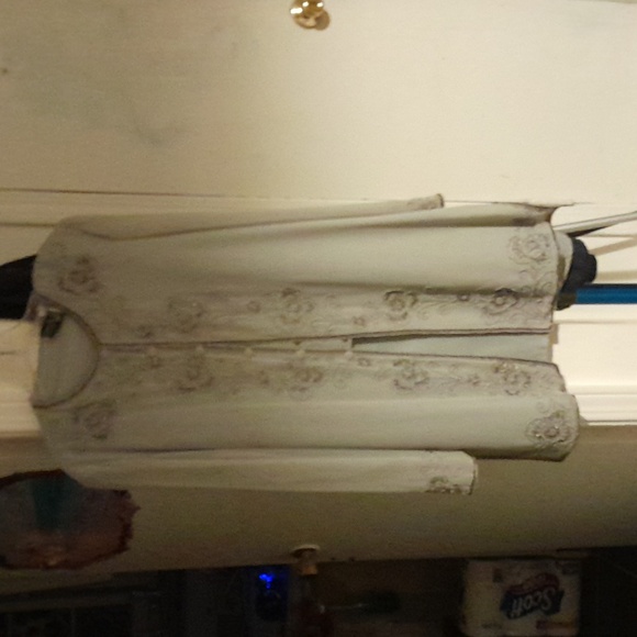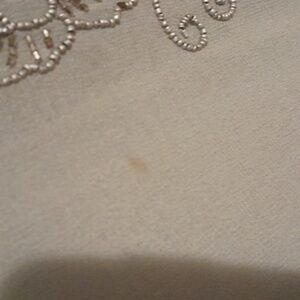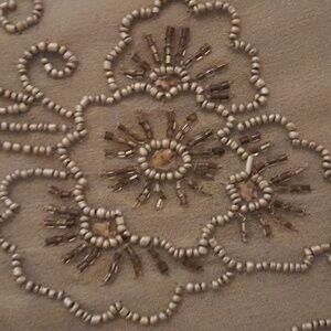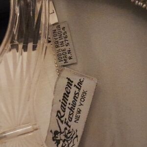Vintage. Made in India,rayon, silver beaded gray blazer with six cloth buttons over snaps. sheer sleeves. Small stain as shown in photo. Perfect for mother of the bride!!