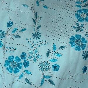 Beaded Blue Sequin Floral Maxi Skirt