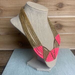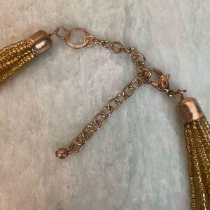 This necklace is a combination of different sizes of seed beads with a lobster claw clasp