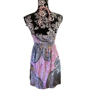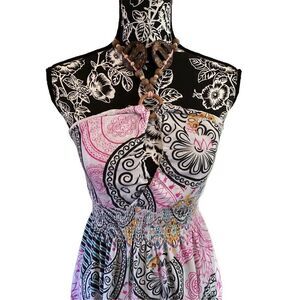 Beaded Boho Style Multicolored Halter Dress Bohemian Rainbow Pastel