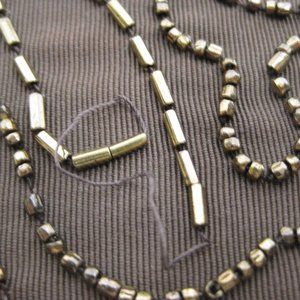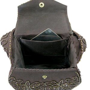 Vintage brown evening bag with bronze glass beads.