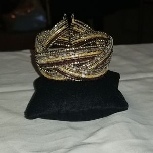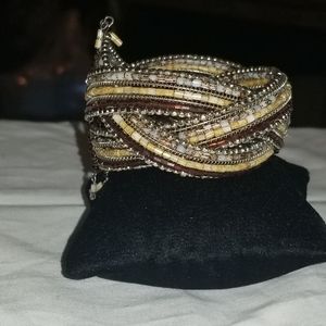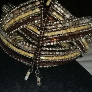 Handmade adjustable beaded bracelet. Elegant design features beads of varying shades of brown and silver. NWOT