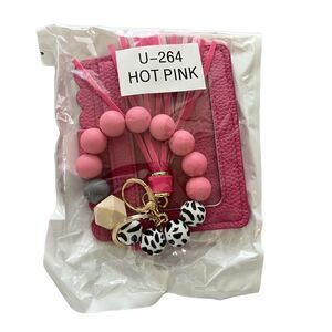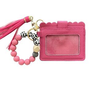 Beaded Bracelet Keychain Card Holder Wallet Pink NEW IN BAG