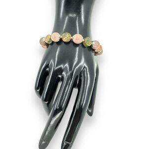 Beaded Bracelet Unakite & Wood Beaded in Sterling Silver Spring Ring Clasp