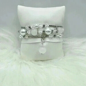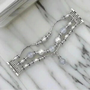Beaded Bracelet Watchband for Apple Watch, silver white theme