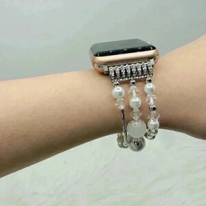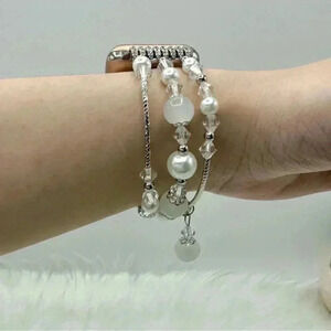 Cute Beaded Bracelet Watchband for Apple Watch New Silver white themed Watchband Compatible With Apple Watch Band size 42 / 44 /45 Elastic Stretch Watchband only