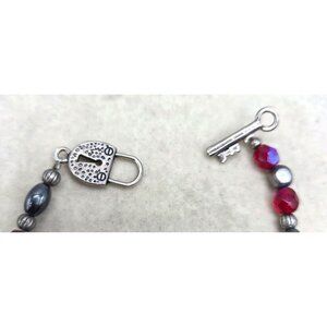 Beaded Bracelet With Red & Silver Beads Key & Lock Toggle Clasp