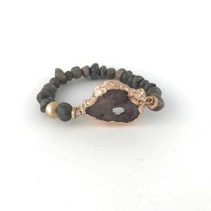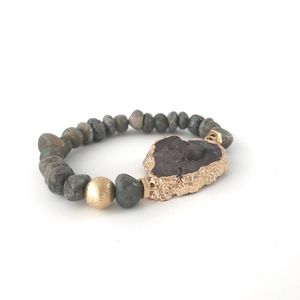 Beaded Bracelet with Quartz Statement Stone. Pops of gold details. Elastic banding.