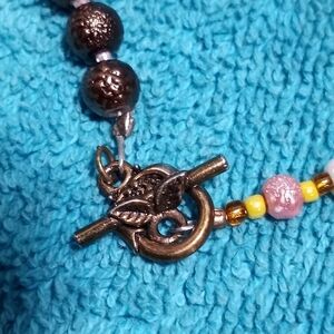 Beaded Bracelet with Toggle Clasp Vintage Brown Pink Yellow