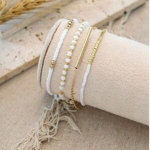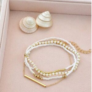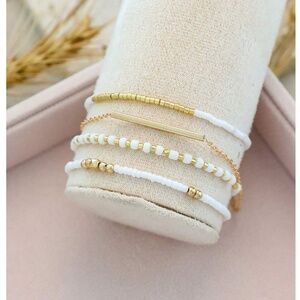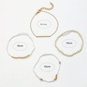 Beaded Bracelets 4 Pieces Gold Color Chain White