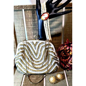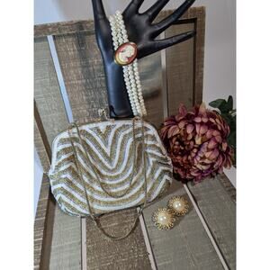 Beaded Bridal Clutch Silver and Gold Handbag LOT of Wedding Accessories