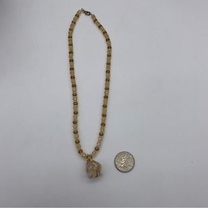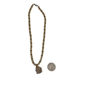 Elevate your jewelry collection with this exquisite preowned beaded necklace, featuring a stunning combination of rich brown and gold tones, adorned with a captivating gemlike crystal pendant.
