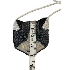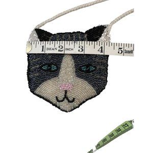 Beaded Cat Shaped Small Zipper Purse w/Long Strap Cross body.