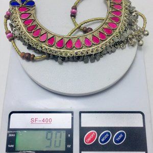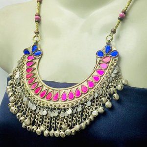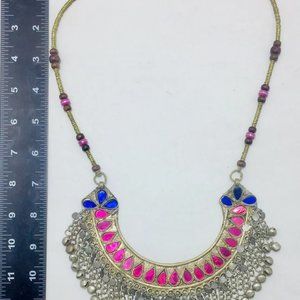 • The antique design crafted on this ornament, beautified with glass stones is giving a vintage look to this piece. The best quality material is chosen by our craftsmen from South Asia. The pendant of this tribal necklace is beautified by glass stones which show the talent of our exceptional craftsmen.