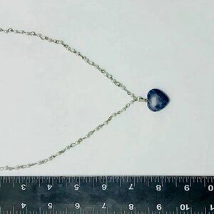 Beaded Chain Necklace With Blue Rhodonite Stone Heart Shape Pendant, Handmade