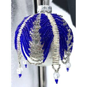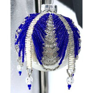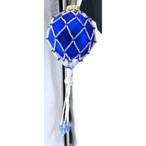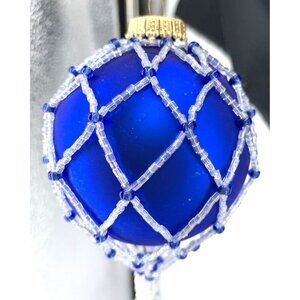 Beaded Christmas Ornament Bead Wrapped Blue 3" Lot of 2 Vintage