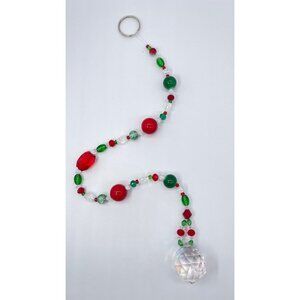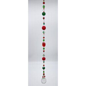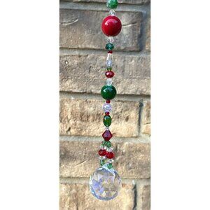 Beaded Christmas Suncatcher Red Green Clear Crystal Prism Hanging Patio Decor