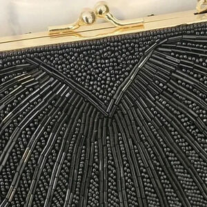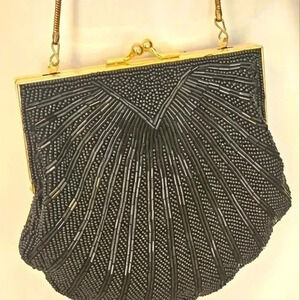 Beaded Clam Shell Purse With Gold Chain and trim