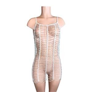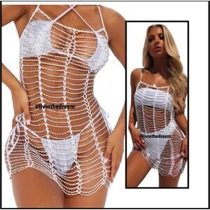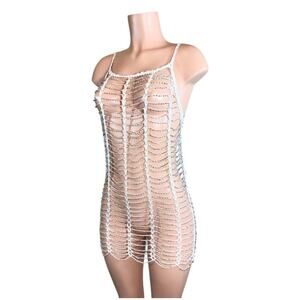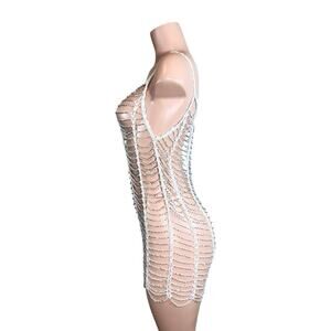 Beaded Crochet White Beach Dress Cover Up One Size $89