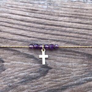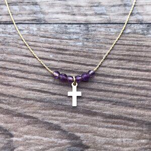 Beaded Cross necklace - This beautiful dainty choker necklace is handmade to order using high quality genuine, 3mm faceted Amethyst gemstone beads.