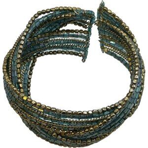Beaded Cuff Bracelet 6.5" With Blue & Gold Sea Beads