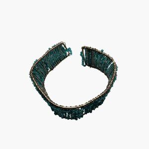 Beaded Cuff Bracelet Handcrafted Wire Wrapped Turquoise Adjustable Open Boho