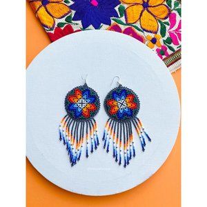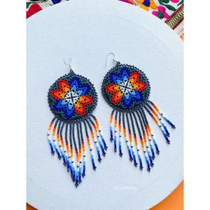 Beaded Earrings, Mexican Earrings, Huichol Art, Multicolor Mexican Earrings, Art