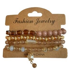 Beaded Elastic Bracelet / 4 Piece Multicolored Beads